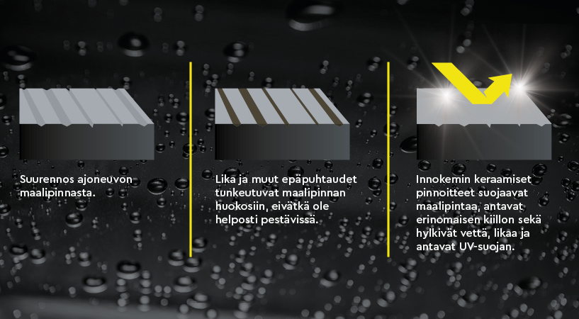 Keraamiset pinnoitteet ovat ohuita kerroksia, jotka suojaavat maalipintoja parantamalla niiden kestävyyttä ja ulkonäköä sekä tarjoavat erinomaisen suojan naarmuja, korroosiota, kemikaaleja ja UV-säteilyä vastaan.
